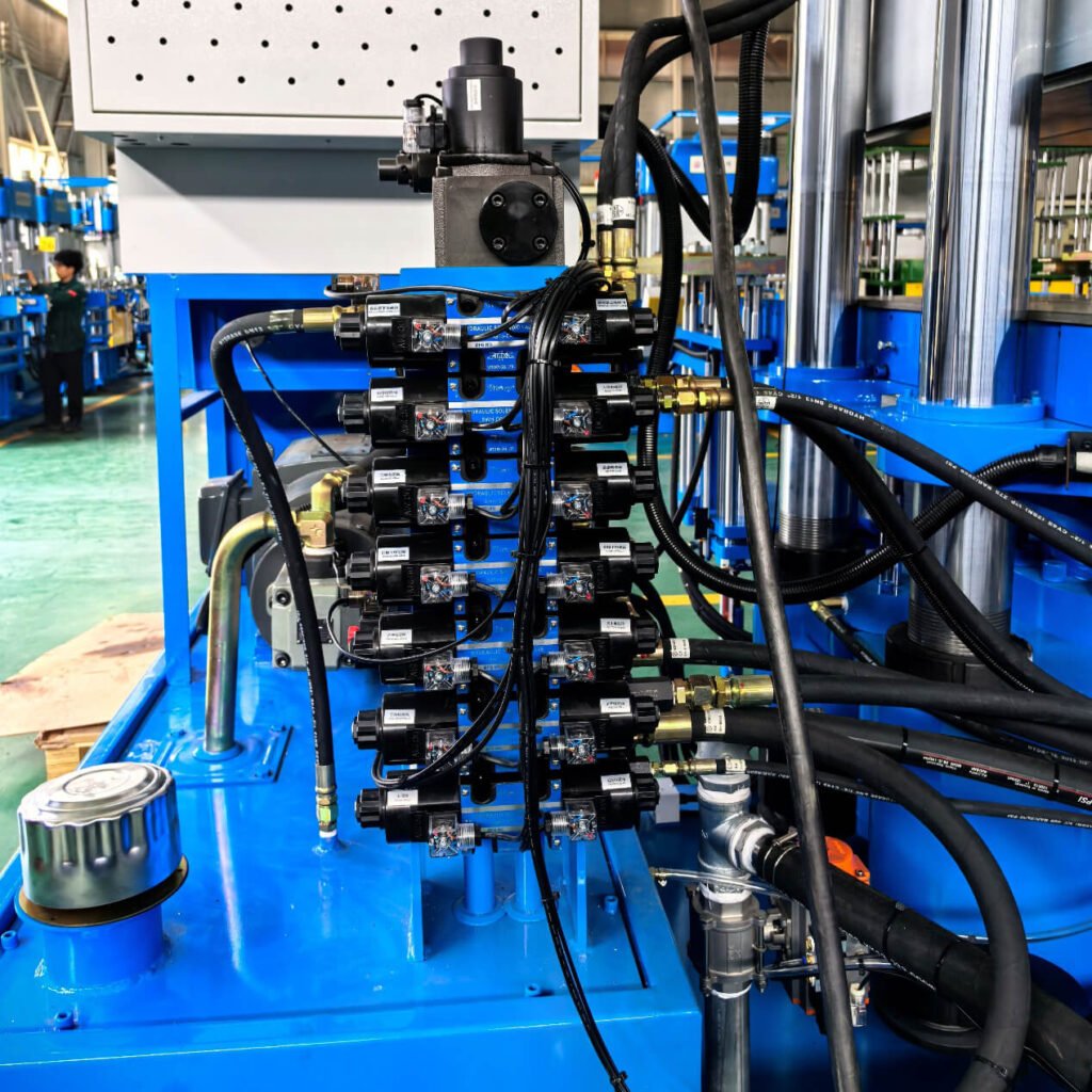 Uniform mold pressure via proportional valves prevents defects (under-cure/flash). Programmable curves guarantee batch-to-batch precision for automotive/industrial tolerances.